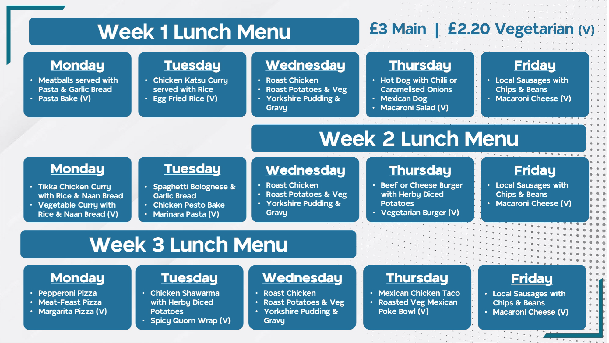 A cafeteria and two canteen outlets operate at break and lunchtime, providing a full range of salads, sandwiches, snacks and hot meals. All food is freshly prepared on site and complies fully with the government’s Healthy Eating regulations. Payments for these meal are via a cashless system where money is pre-paid via the SCOPAY online payment system. Please see the section Payments to school for further information. Students may also bring a packed lunch if they prefer and can be eaten in the Theatre Hall or outside using the picnic benches.